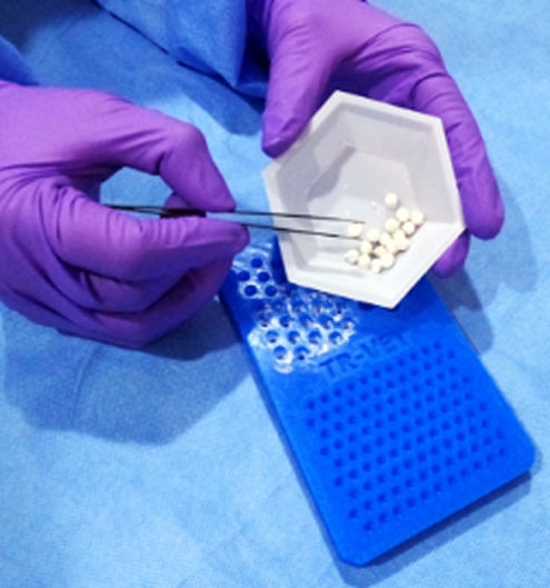 TRANSPORTE DE ANTIBIÓTICOS: Libera de manera controlada y prolongada antiobióticos, gracias a la estructura mesoporosa del biocerámico que retiene el medicamento, aumentando la eficacia del tratamiento de manera local.